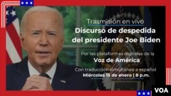 Está previsto que Biden dé su discurso de despedida en la Casa Blanca el miércoles a las 8:00 pm (hora del este de EEUU) desde la Oficina Oval de la Casa Blanca.