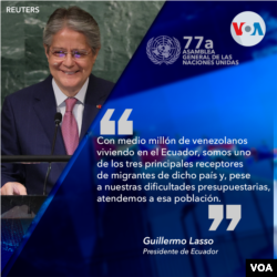 El presidente Guillermo Lasso afirmó el miércoles, durante su intervención en la Asamblea General, que su país es uno de los mayores receptores de migrantes venezolanos, pues medio millón de ellos viven en su país y que, pese a las “dificultades presupuestarias”, atienden “a esa población con salud, educación y otros servicios sociales”. Por ello, enfatizó que espera que el mundo apoye a su país con el “plan de regularización de hermanos venezolanos”.