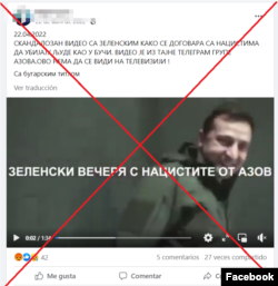 También desde abril circula en redes un video que muestra a Zelenskyy reuniéndose con “nazis del Batallón Azov”. En este caso, los subtítulos están el búlgaro, lo que dificulta la comprensión para un angloparlante o hispanohablante.