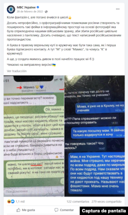 En la descripción, señalan que: “De forma bastante poco profesional, con faltas de ortografía, los rusos crean y difunden tales falsificaciones en el espacio informativo basándose en una foto que fue difundida por nuestros militares por la mañana con el fin de confundir a la población civil rusa. Es bastante obvio que el texto fue escrito por un propagandista de habla rusa”, porque se incluyen expresiones que no son propias de Ucrania.