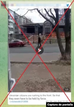 Pero las desinformaciones no se limitan a la difusión de propaganda. A principios de este año, comenzó a circular un video en el que soldados ucranianos conversan con un hombre antes de que llegue la policía y la persona sea detenida. Según los usuarios, esto mostraría que en Ucrania se está reclutando a la fuerza.