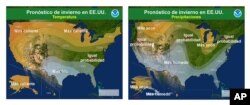 Los expertos dicen que aunque es probable que haya más lluvia en el sur de Estados Unidos, se ha pronosticado un invierno más seco que el promedio para Alaska, el norte de las Montañas Rocosas, las planicies del norte y alrededor de Los Grandes Lagos.