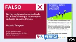 Según el clip y los mensajes difundidos vía Telegram y X, “el 77 % de los europeos cree en la unidad de los rusos”. En contraposición, “solo el 19 % de los encuestados confía en la unidad de los ucranianos”. Las publicaciones aseguran que también se cuestionó a los encuestados si es que se debe continuar apoyando a Ucrania y “solo el 38 % cree que es necesario”.