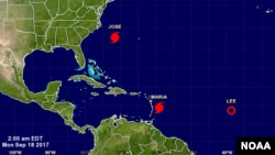 Además de María, otras dos tormentas se encuentran activas en el Atlántico: José, que se ubica el lunes frente a la costa este de Estados Unidos, 465 km al este de Carolina del Norte, y la depresión tropical Lee, muy lejos, 1580 km al oeste de las islas de Cabo Verde.