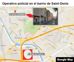 Saint-Denis, situado en las afueras de París, es el mismo barrio donde se ubica el Stade de France, uno de los lugares atacados el viernes, y donde se encontró uno de los autos utilizados en los atentados.