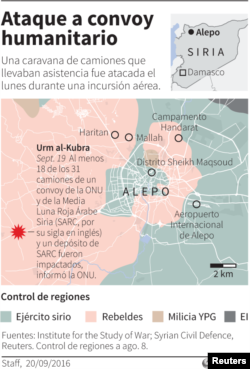 Rusia y Siria han negado ser los responsables del bombardeo y en un principio dijeron que el incidente se debió en realidad a un incendio en uno de los camiones del convoy.