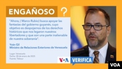 Al referirse a Rubio, Gil señaló: “Ahora, busca apoyar las fantasías del gobierno guyanés, que pretende despojarnos de los derechos históricos que nos legaron nuestros libertadores y que son parte inalienable de nuestra soberanía”.