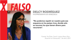 En un discurso televisado el 7 de abril, la vicepresidenta venezolana Delcy Rodríguez se hizo eco de las preocupaciones expresadas a principios de este año por el secretario general de las Naciones Unidas, Antonio Guterres, sobre la distribución desigual de las vacunas COVID-19 a nivel mundial. La vicemandataria prometió que Venezuela no repetiría lo que está pasando “en países ricos donde solo se vacunan los que tienen dinero para vacunarse”.